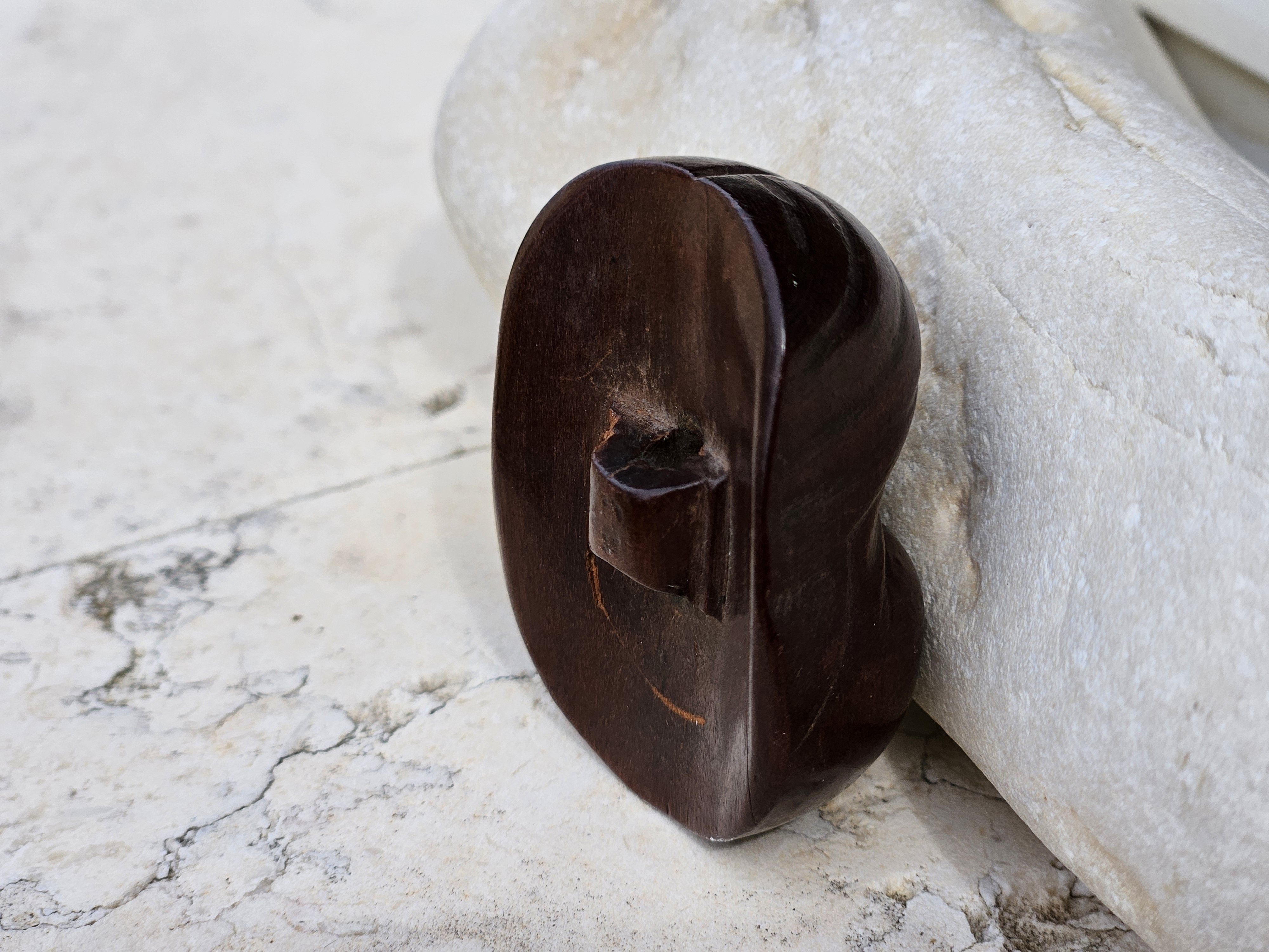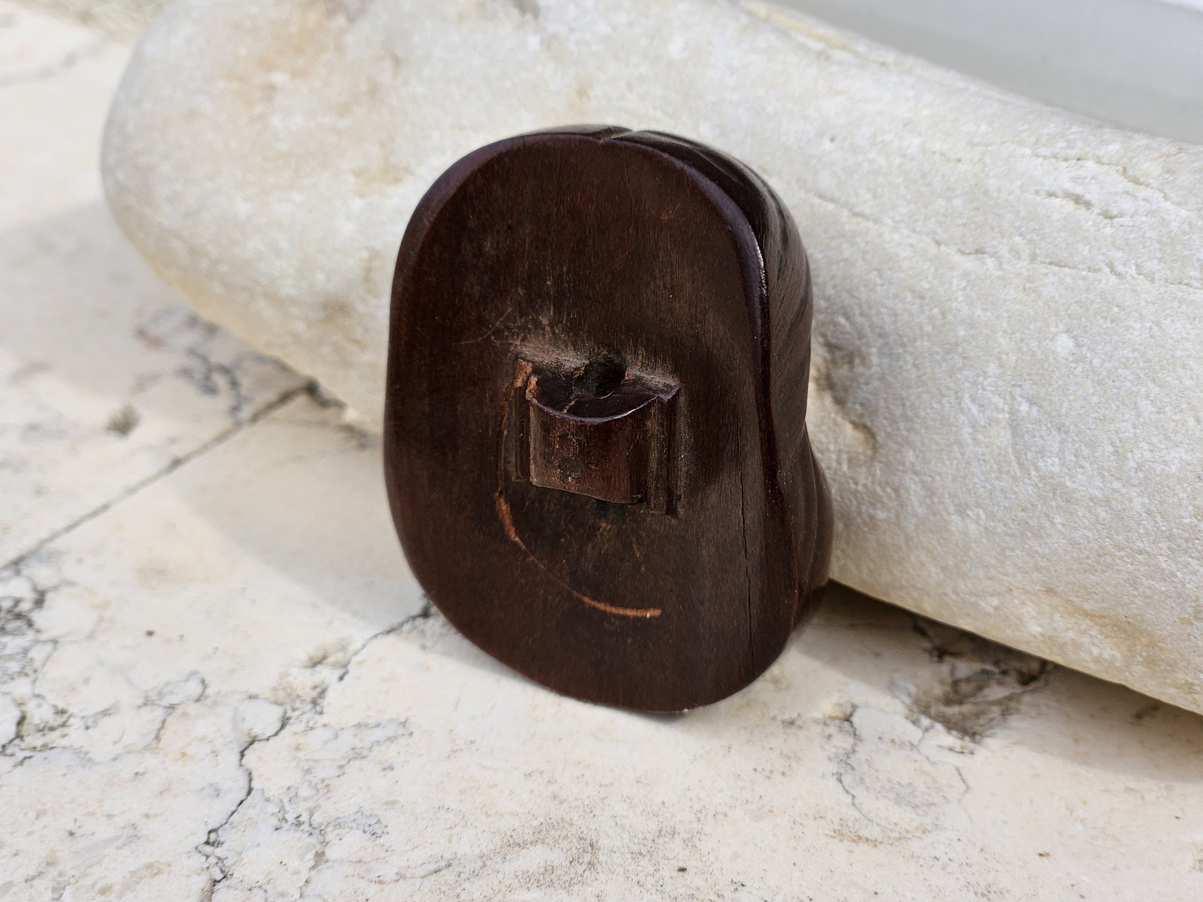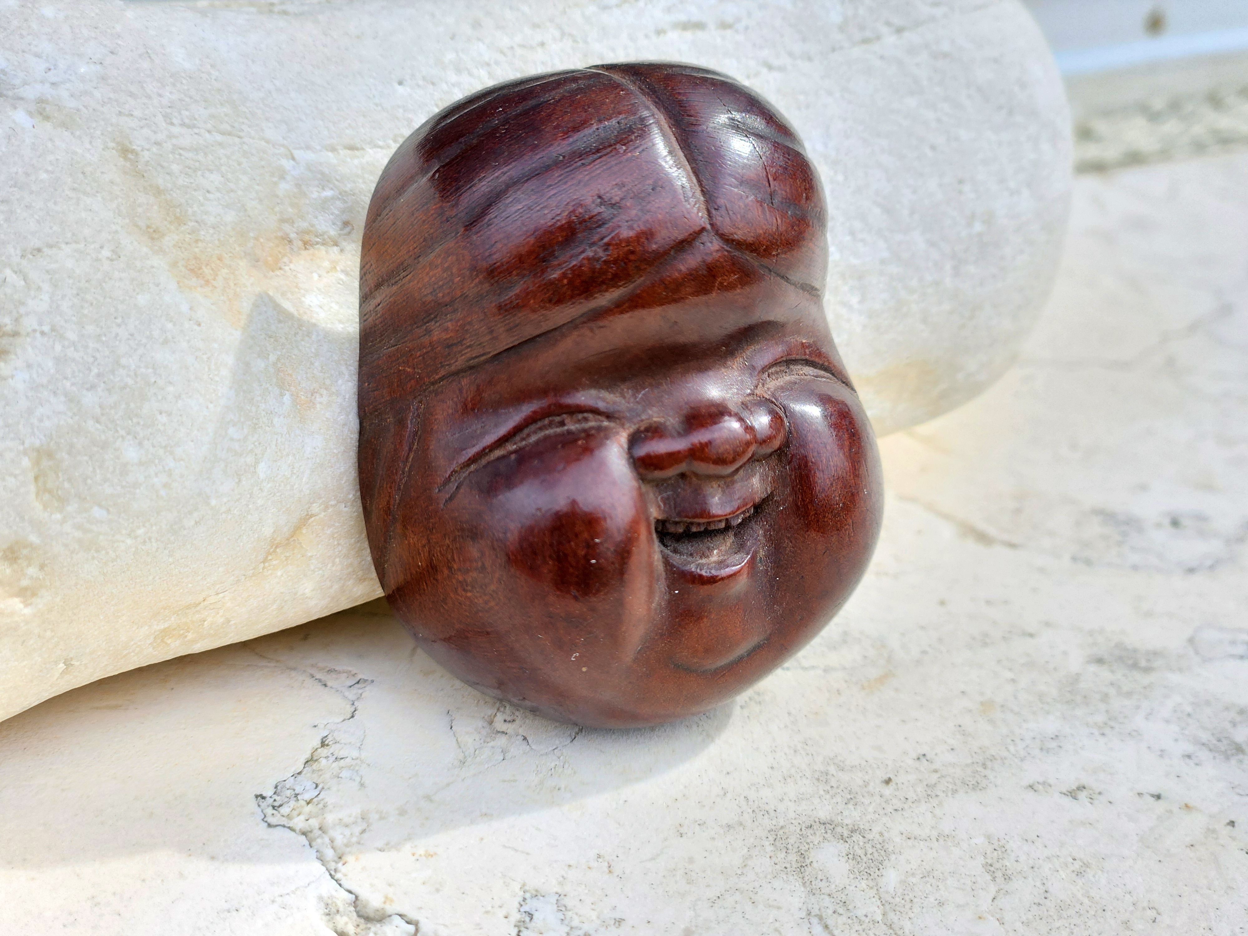 Antique Noh theater 1.5″ netsuke mask of Okame Otafuku with shunga motive
