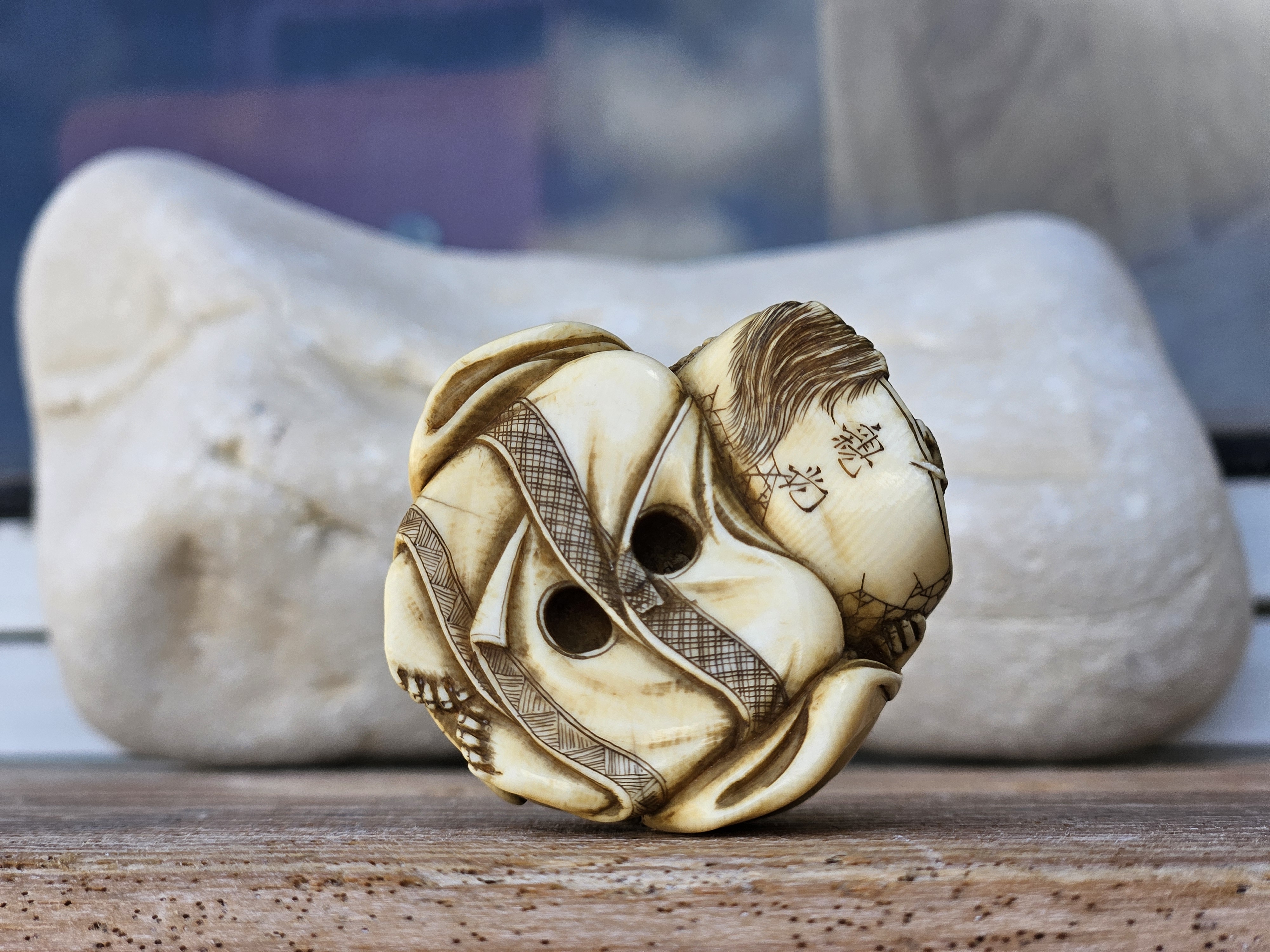 Excellent antique condition with a warm, even patina. Light age toning and tiny age-related lines typical of ivory. No chips, losses, or restorations detected. Inked details remain strong and crisp.